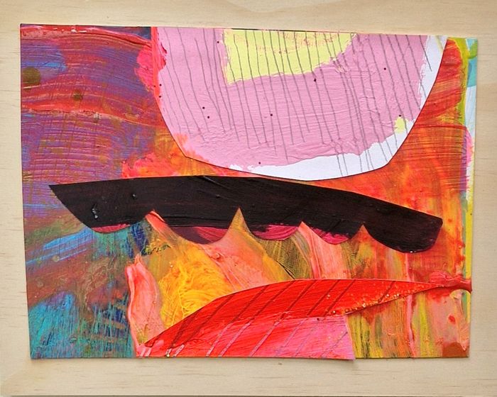 Mixed media on wood. Abstract piece exploring the language of colour, paint, composition and material.