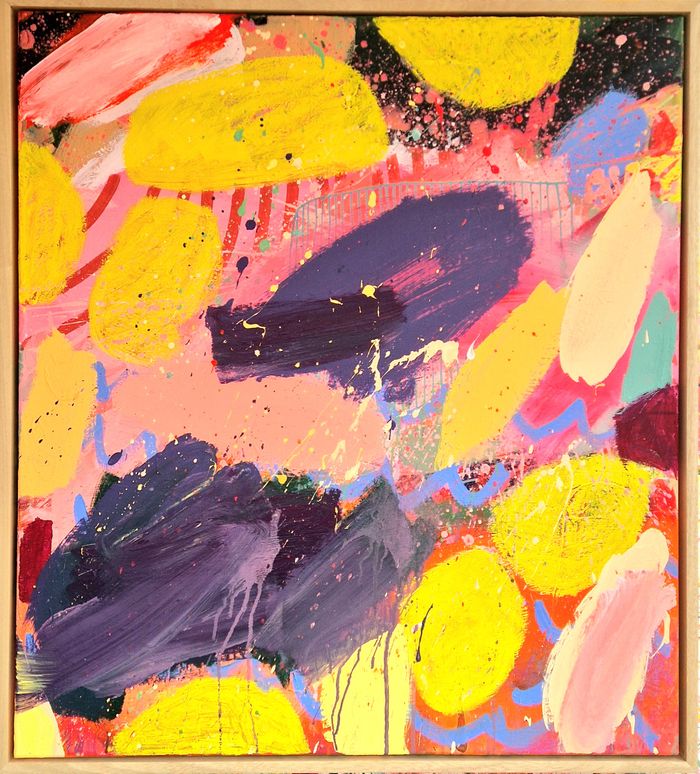 Original contemporary abstract painting, exploring the language of paint and colour. Acrylic, oil bar and Posca pen on deep edge canvas.
