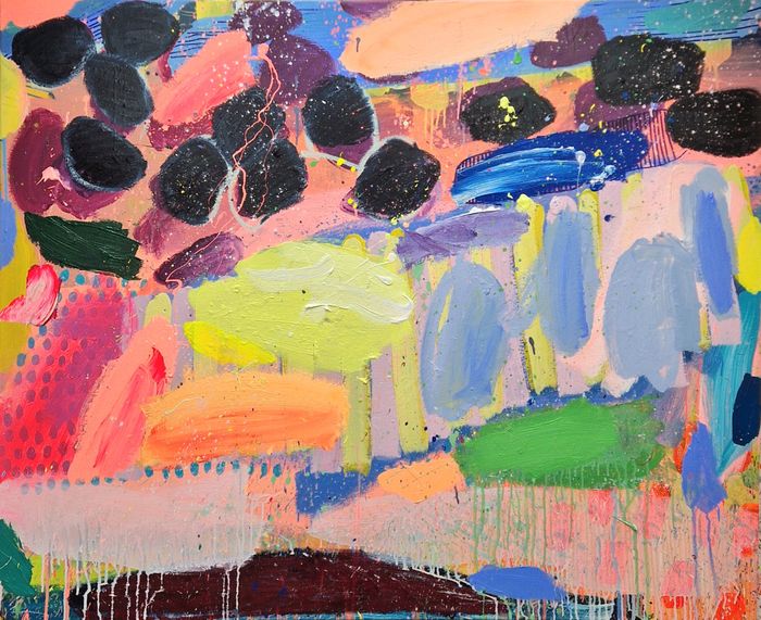 Original contemporary abstract painting, exploring the language of paint and colour. Acrylic, oil bar and Posca pen on deep edge canvas.