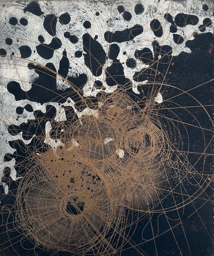 Inspired by celestial cartography, this abstract etching explores how we turn to the natural world to navigate not just the stars, but our own sense of place