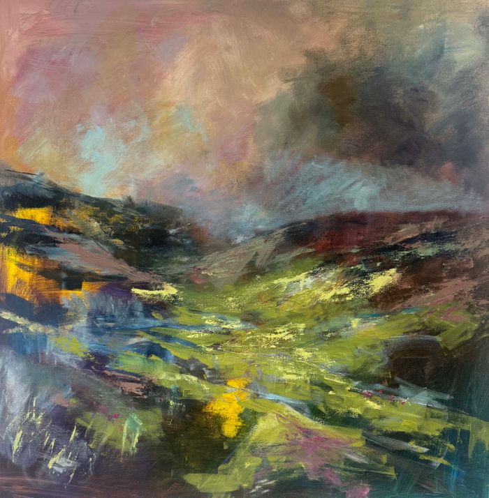 This 1m square painting holds some of the landscape itself in the landscape depicted. Pigments are ground from stones from these hills and made into oil paints, the rawness of the natural materials and the historical element of the paint making bring an energy and authenticity to the painting.