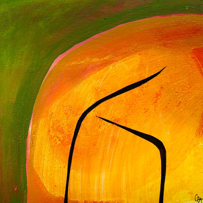 Acrylic and mixed media on wooden panel in an off white wooden frame