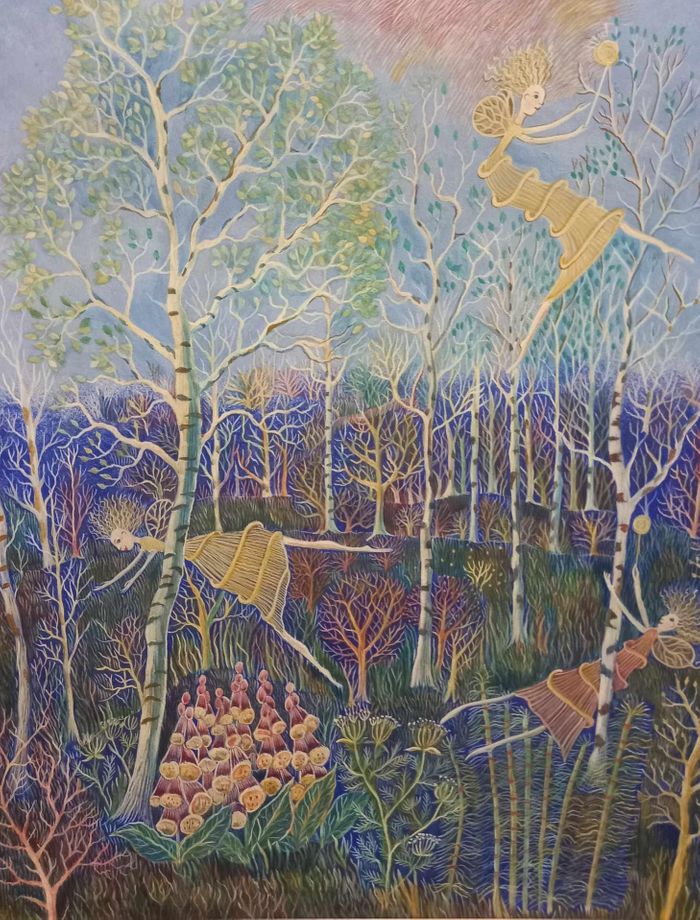 Kate Collins' art reflects a distinctive naive style that blends tradition with originality. Her inspiration from Wedgwood's Fairyland designs adds a nostalgic yet fresh touch to her vibrant, layered works. As a president of M.A.F.A., her influence in the art community continues to grow.