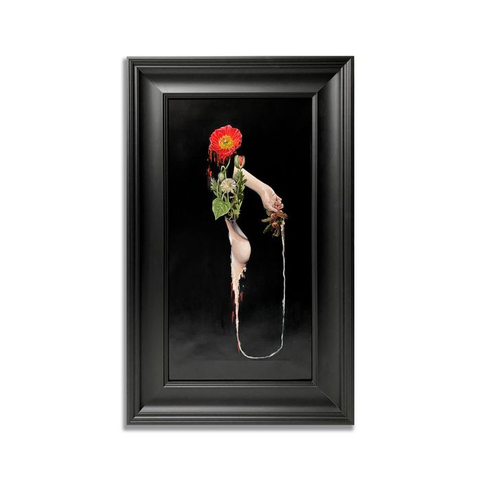 At the heart of the painting lies the symbolic imagery of poppies and datura flowers, carefully woven into the narrative to convey the complexity of the survivor's experience. Poppies, with their vibrant red hues, often symbolize both remembrance and oblivion, serving as a poignant reminder of the pain endured and the struggle to reconcile. Meanwhile, the datura flower, with its intoxicating fragrance and hallucinogenic properties, represents the blurred boundaries between reality and illusion, echoing the disorienting aftermath of violation.