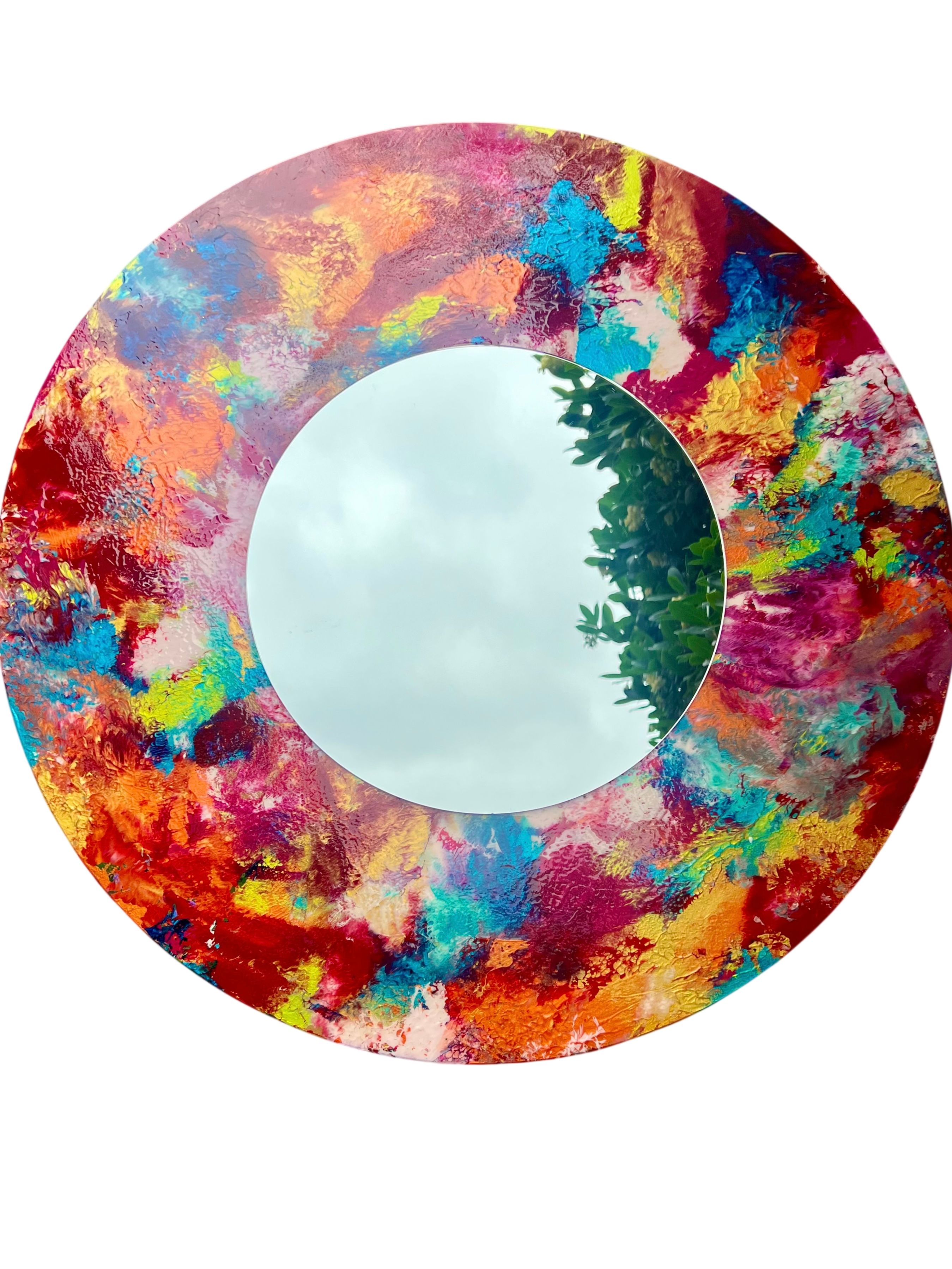 Mixed Media: Acrylics, on wood and mirror.60cm