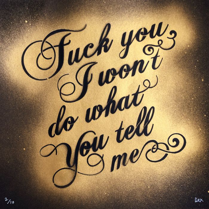 One of a series of limited prints inspired some of the most iconic lyrics ever penned. Inspired by Rage Against The Machine's poetic anthem. This a unique stencil print. Two colours (gold and black) on Black GF Smith Colorplan 350gsm. Edition of just 10.