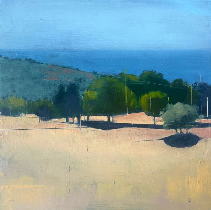 This study was painted from a favourite viewpoint from my house in central Spain. I love the dark puddles of shade from the trees, in such stark contrast with the sun on the dry grass. I tried to capture the rich colour of the Mediterranean pines, so defiantly green in the relentless heat.