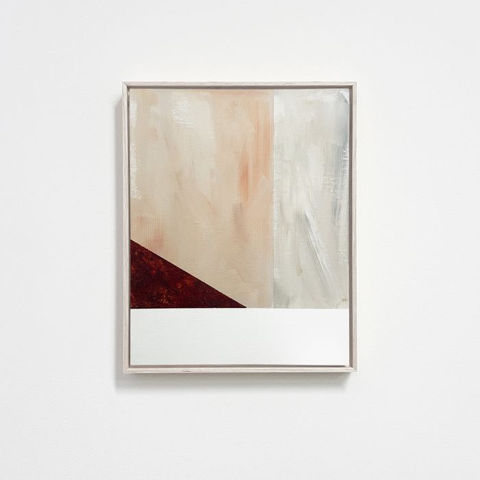 Painted in mixed media on canvas board, signed on reverse, and float-mounted in a solid wood frame with a saw-tooth hanging hook.