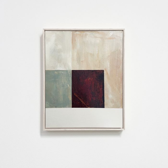 Painted in mixed media on canvas board, signed on reverse, and float-mounted in a solid wood frame with a saw-tooth hanging hook.
