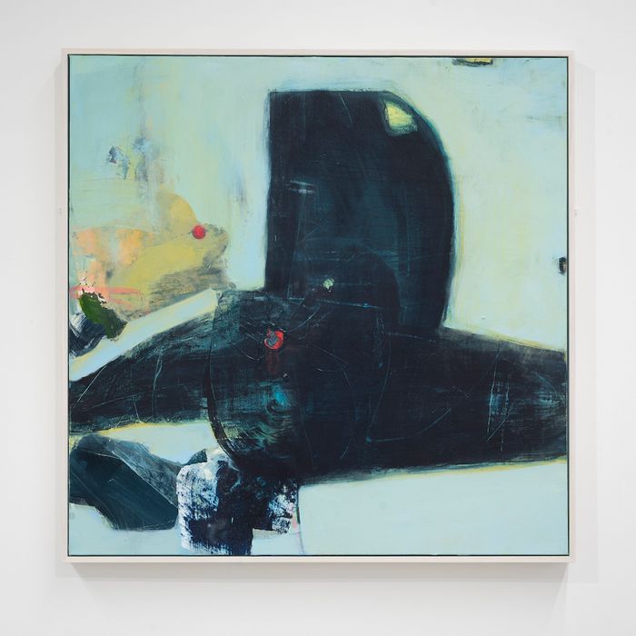 large abstract painting - 1M x 1M - mixed media on canvas in whitewashed wooden frame