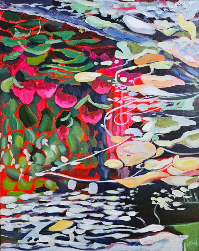 Inspired by the reflections on a pond, this piece explores surface and depth. If we truly look (outward and inward), what radiance will we see?