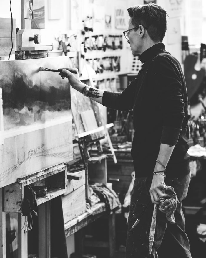 Her motorway paintings have featured in several publications including the Guardian online and twice in the Observer’s New Review and has also featured on BBC Radio 6Music and ITVX news. She’s a co-founder of Rogue Women and founder of A Small Space, a member of MAFA and is currently represented by Saul Hay Gallery and Jari Lager Gallery.