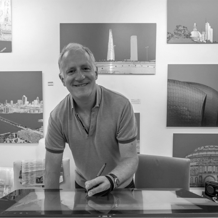 Michael Wallner is a London-based artist whose work reimagines the urban landscape through vibrant colour, precise line, and innovative use of material. Drawing on his own photography, he digitally transforms cityscapes into contemporary artworks that capture the rhythm and geometry of modern life. His portfolio spans iconic skylines from London and New York to Hong Kong, Paris, and Dubai.