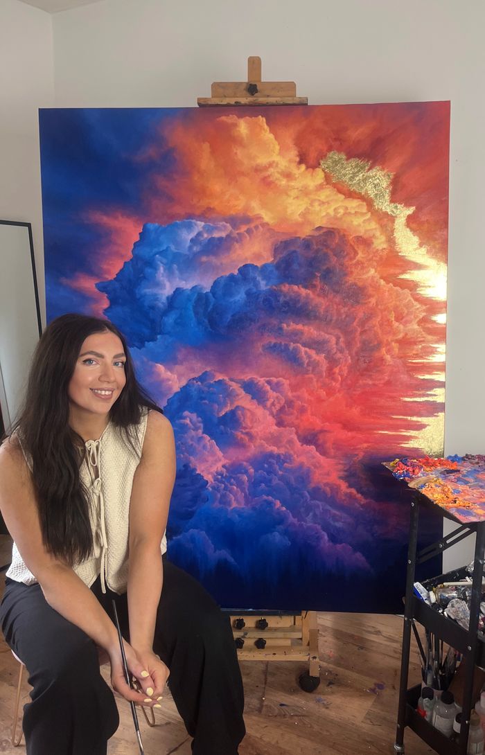 Kelley draws inspiration from the natural world, particularly the dramatic skies and cloudscapes that often reflect the complexities of life. These elements are central to her work, where she uses intense colours and dynamic compositions to convey emotions and moments that are fleeting, yet profound. Her art invites viewers to pause and appreciate the transient beauty that surrounds us.