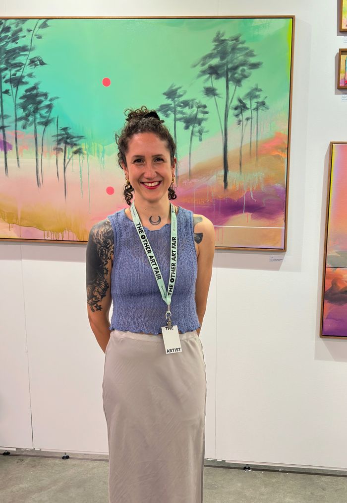 Sara Hoque is a multidisciplinary artist working from her studio in East London. She is known for her landscapes that capture the essence of the natural world. Born to a Norwegian mother and British/Bengali father, her multicultural upbringing fostered a deep appreciation for travel and a nomadic way of life. This sense of movement and connection to nature is central to her work, which is heavily influenced by her life on a narrowboat.