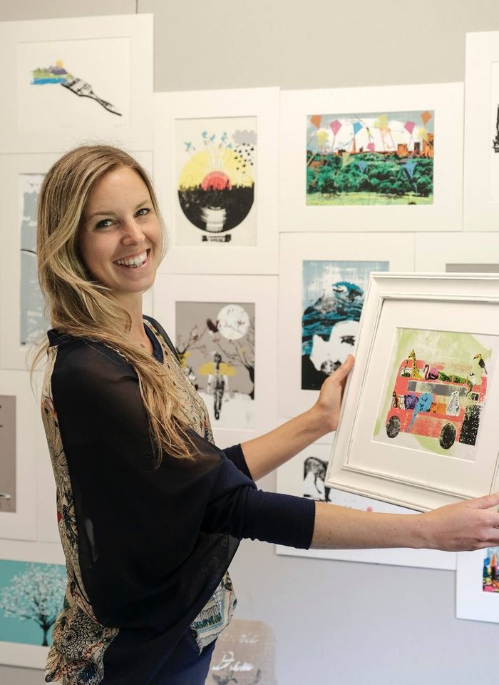 Katie Edwards screen print illustrations reflect her appreciation for natural beauty, beautifully juxtaposed with familiar cityscapes with a humorous and symbolic approach.