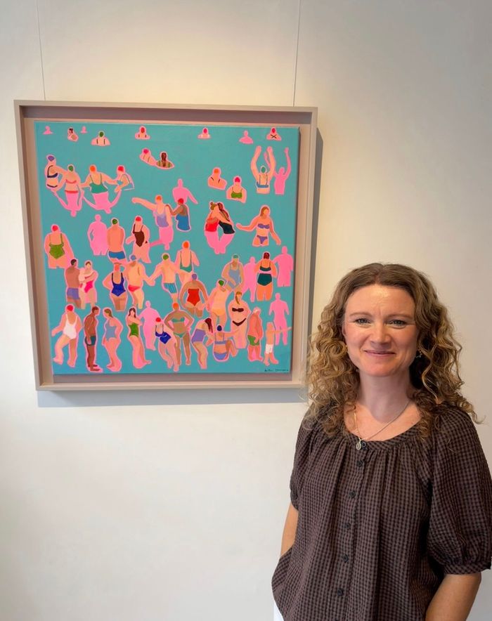 “The sight, sound and energy of 500 people in the sea is so joyous and moving. Everyone is so present in the moment. I love the way bodies merge, the pops of neon colour from swimming hats, and how everything fades into the horizon. It feels as though I’m standing within my painting.”