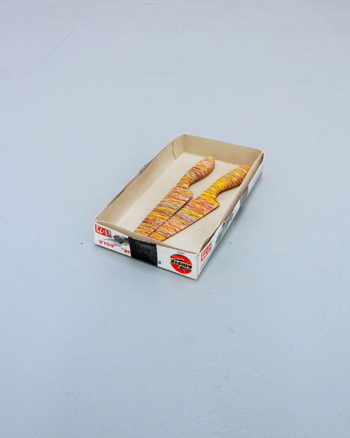 Found objects, cotton thread, cardboard