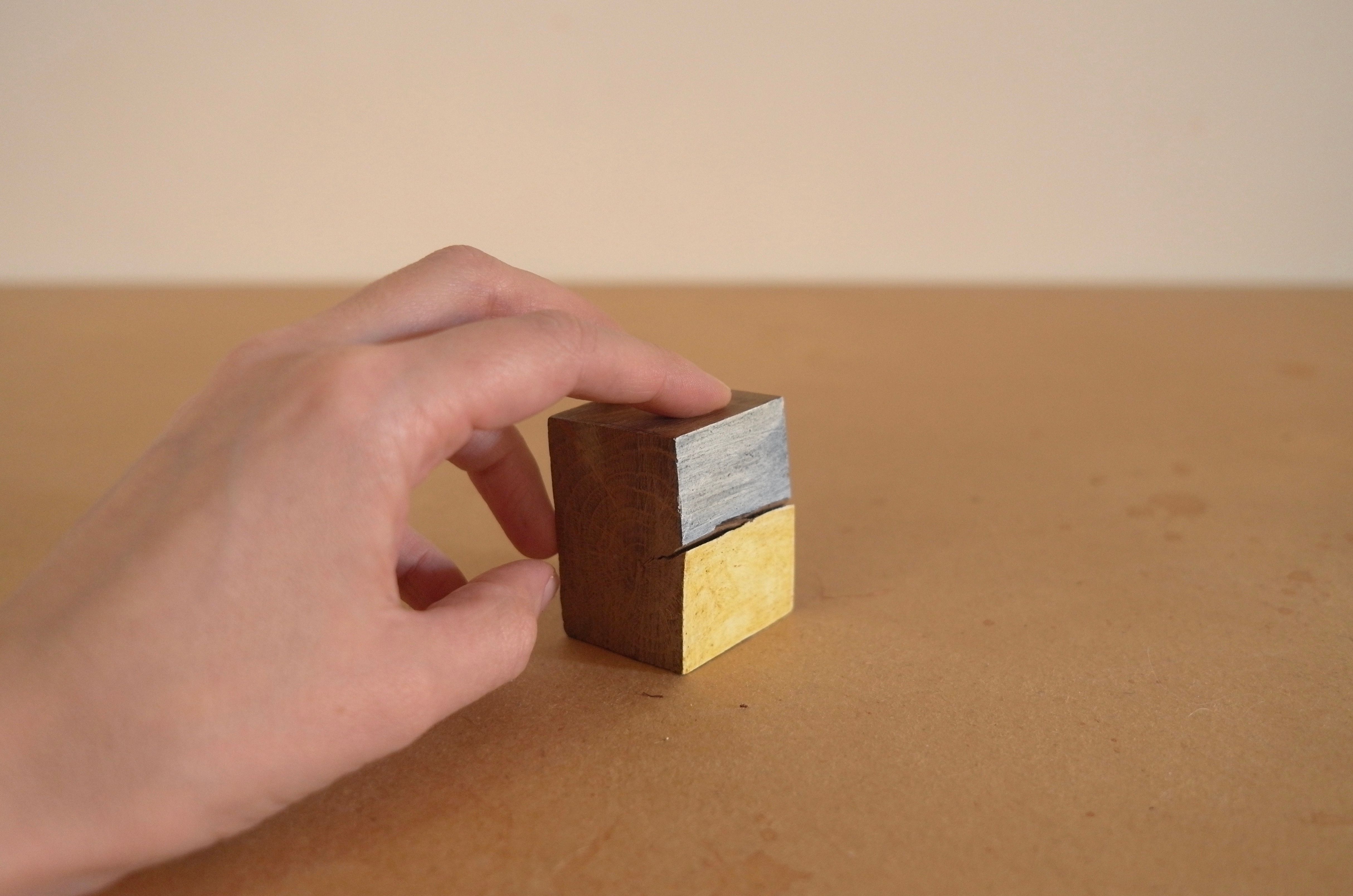 Oak offcuts (gifted by Kate Genever) and oil paint (made from pigment extracted from plants grown at Primary, Nottingham)