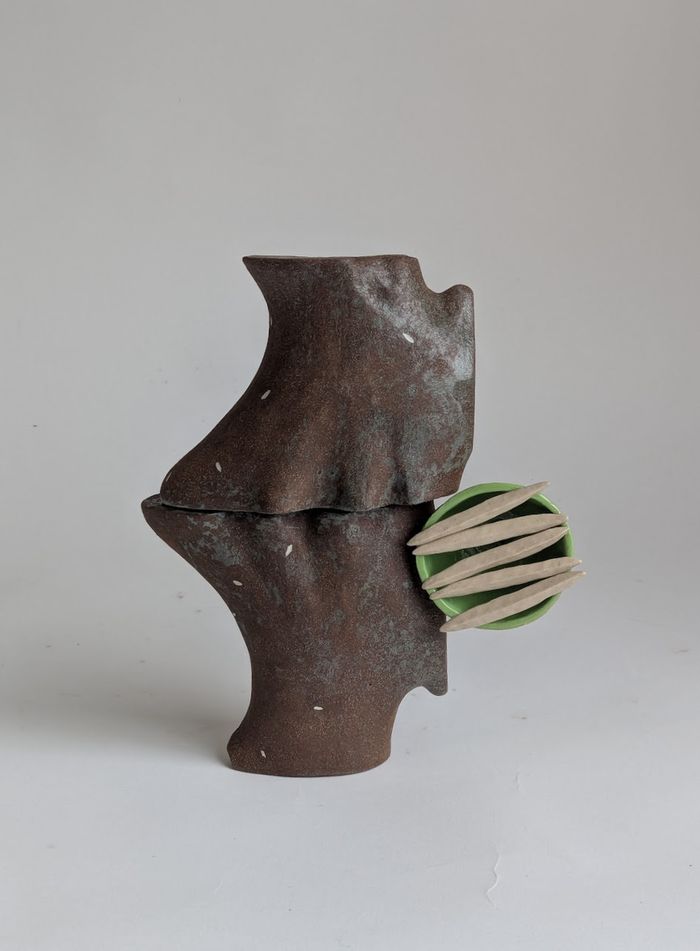 Handbuilt red body ceramic wall based sculpture with inlaid slip.