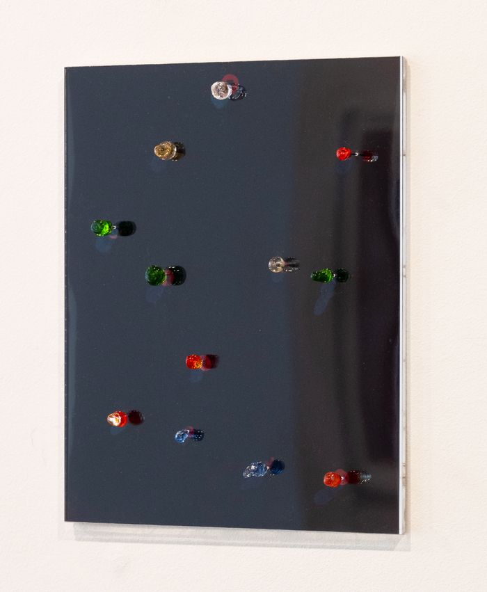 2025, unique photogram, hand-made glass pins, steel, 25,2x20,2x3 cm