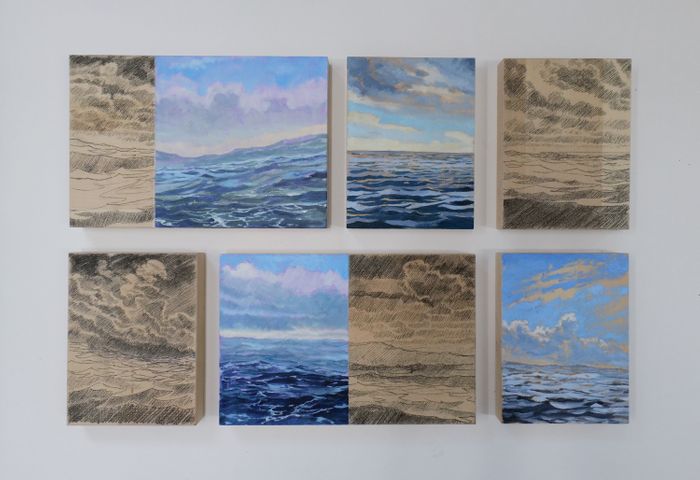 Oil, pencil and gesso on wood panels 20 x 30cm, 20 x 15cm, 2025.