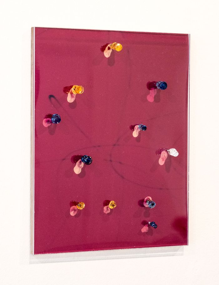 2025, unique photogram, hand-made glass pins, steel, 25,2x20,2x3 cm