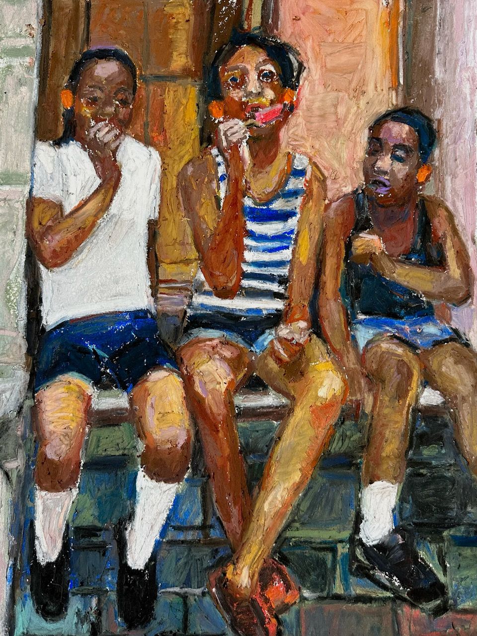 This oil pastel drawing is part of a personal body of work which shares my own story for the first time. Growing up in Manchester during the 1980’s in unsettled surroundings was challenging but my imagination, siblings, friends and love of nature kept me safe and helped shape the artist I am today.