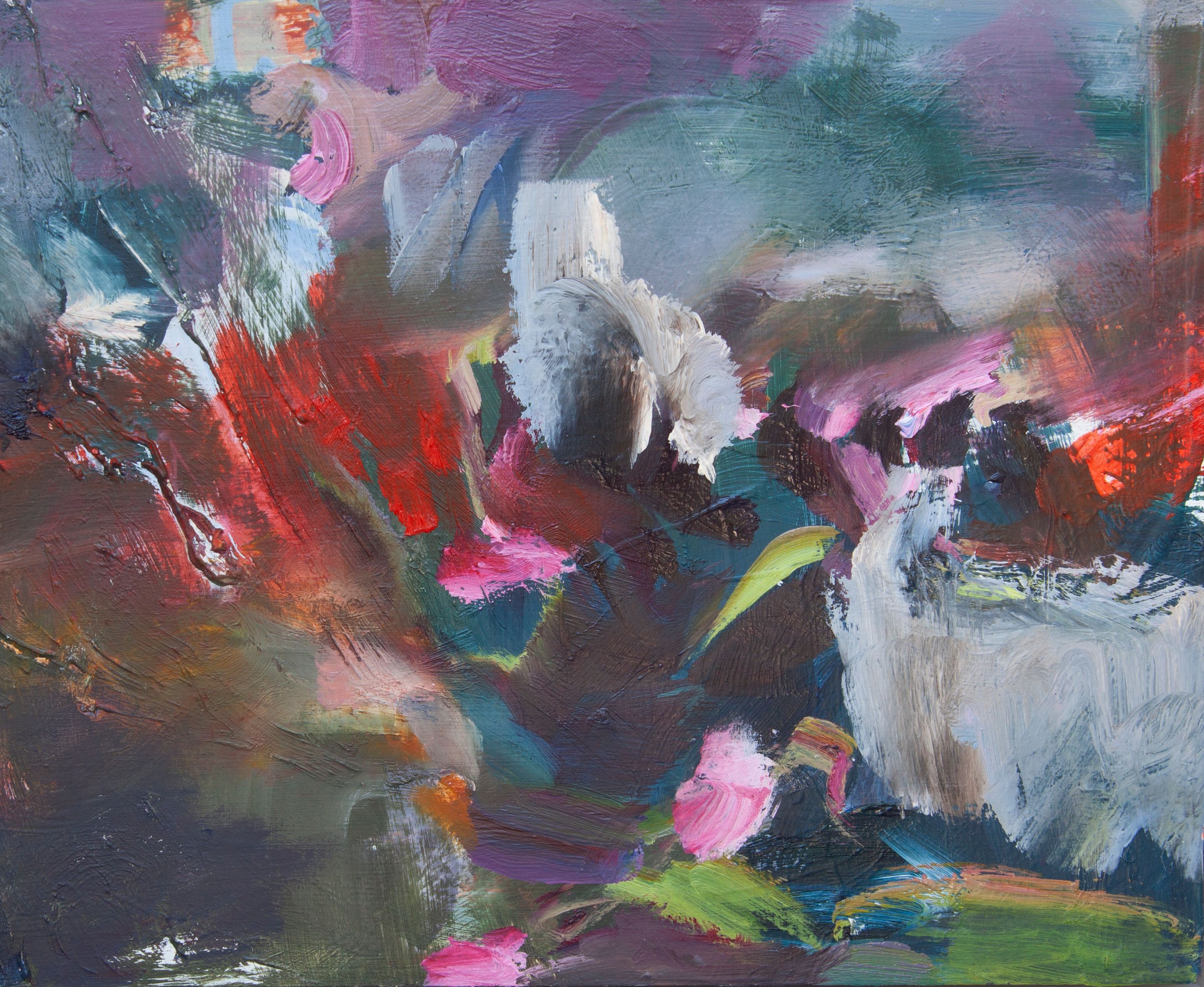 A small oil painting made this summer as part of a larger project to paint summertime- as a piece of time. I have been working across several paintings all at once, allowing a slow accretion of layers and observed light to billow and flicker across paintings. This rolling mix of observed shadows and abstract enquiries has played out against the constant backdrop of a world in violent turmoil. I make small paintings like this one alongside much larger, slower work- sometimes these small works have a pulse and an energy which sums up the overview.