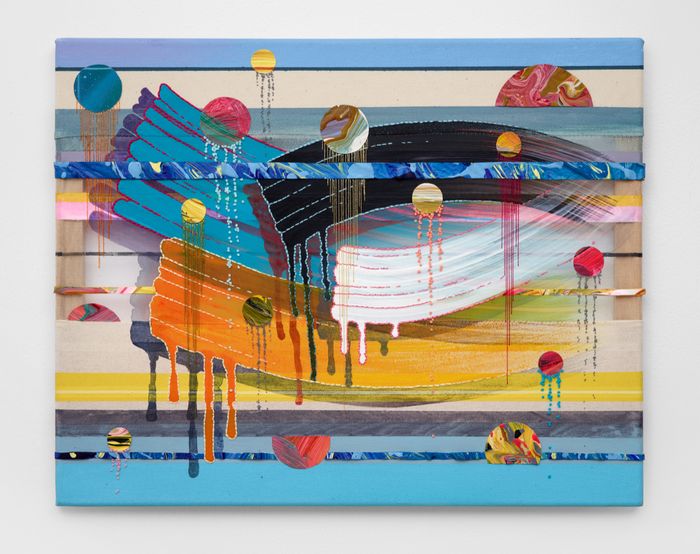 Medium: Acrylic and embroidery on canvas, calico and organza
