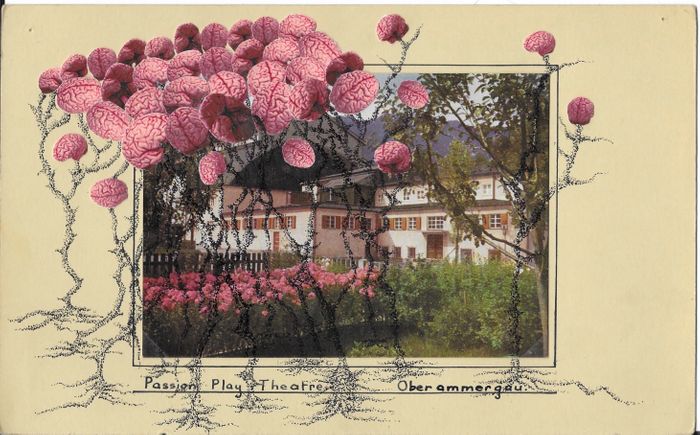 2025, pen and ink, collage and found, mounted photograph