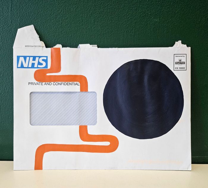 HOLLY KILNER- (Lives and works Blackpool). North West based disabled artist whose work celebrates resilience, awareness, and reclamation. Through painting, she explores the emotional landscape of living with chronic illness and disability, transforming personal experience into visual storytelling. Her practice is both deeply personal and universally human — a reminder to live fully and find creativity, even in pain. Honouring her own journey by incorporating awareness ribbon colours that reflect health conditions, weaving them into each artwork as symbols of reflection and acceptance. I paint organ-like forms on repurposed NHS envelopes, turning anxiety-inducing medical correspondence into deeply personal self-portraits. These works blur the line between vulnerability and empowerment, body and mind, transforming fragments of lived experience into visual affirmations of healing. Through art, Kilner invites others to find meaning in the marks that make us human and the quiet resilience that exists within us all.