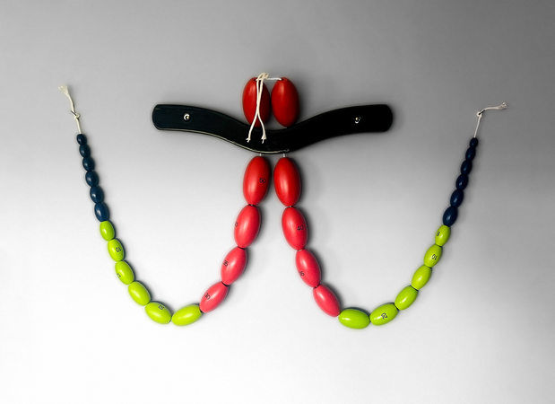 Medium: Found objects, wood, fragrance, paint, transfer. Dimensions: 109 x 75 x 3 cm.
